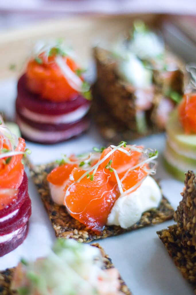Kanapky s Gravlax lososem a bezlepkovými semínkovými krekry