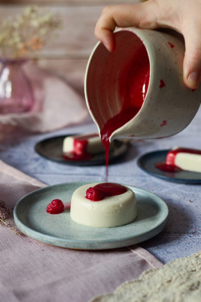 Zatuhlé Panna Cotty servírujte s malinovou omáčkou a nejlépe i čerstvými malinami. Dobrou chuť! ❤️