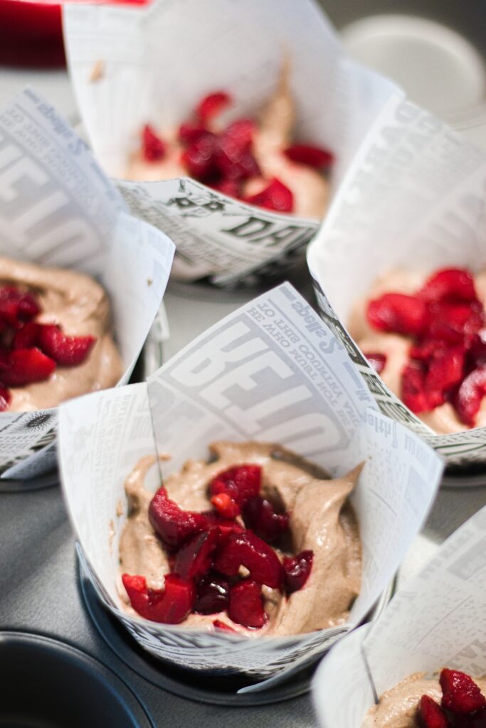 5. Muffiny pečte na 160°C cca 25 minut. Vyzkoušejte špejlí a případně ještě dopečte, je možné, že některé plody pustí více vody.